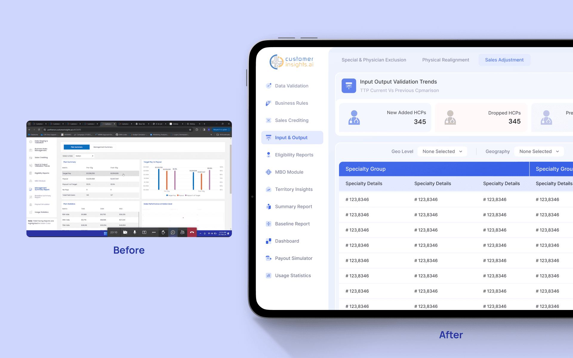 CustomerInsights.AI is a platform-led Analytics-as-a-Service company built exclusively for the life sciences industry. While the product had strong underlying technology and advanced AI/ML capabilities, the user experience in 2022 reflected a traditional B2B backend system—dense, complex, and not designed around real user workflows. The goal of this project was to redesign the core analytics experience to make insights more accessible, explainable, and actionable for commercial teams across pharma and biotech organizations.